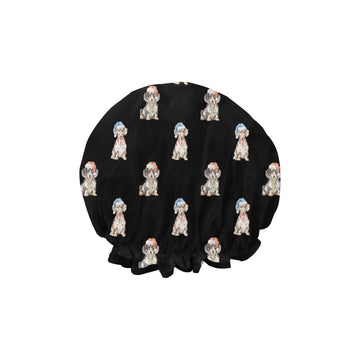 Watercolor Elegance Piebald Dachshunds Christmas Elastic Reusable Shower Caps-Accessories-Accessories, Christmas, Dachshund, Dog Mom Gifts-Black-ONE SIZE-34