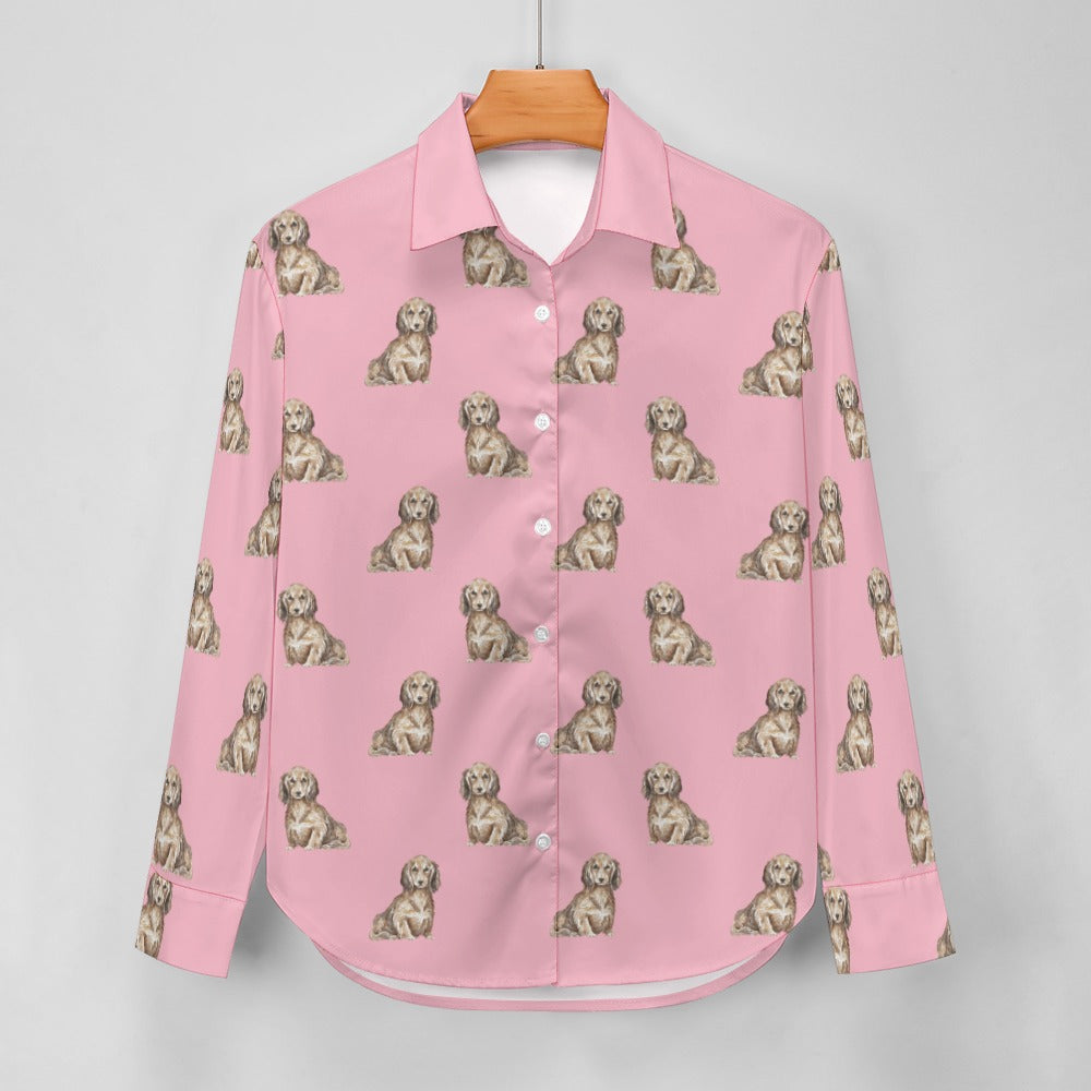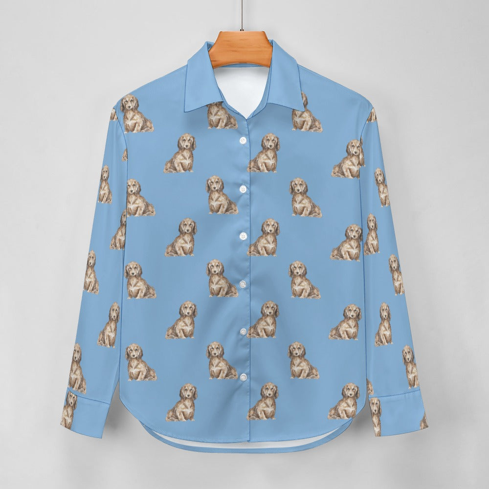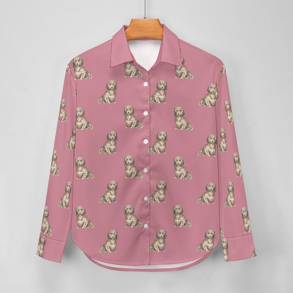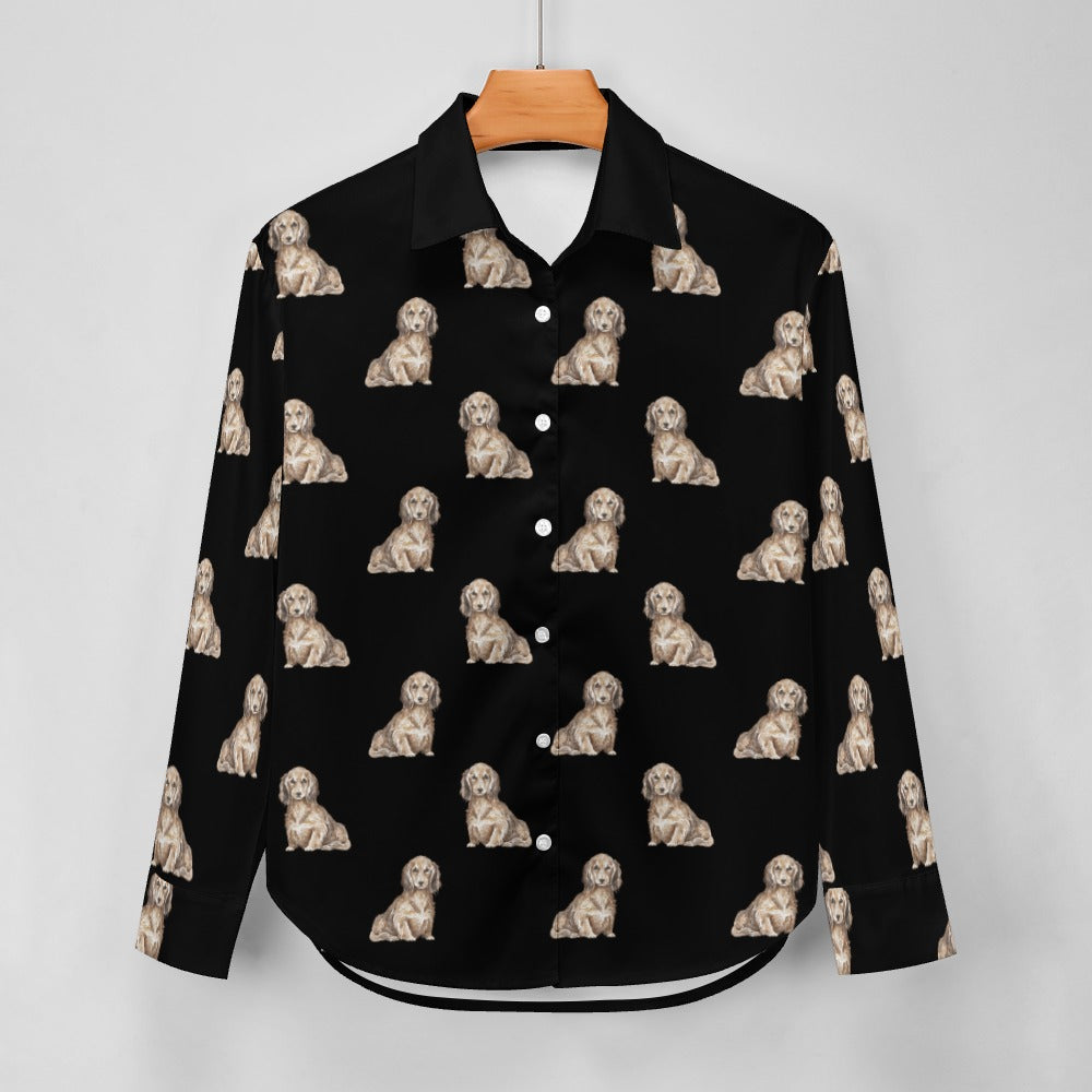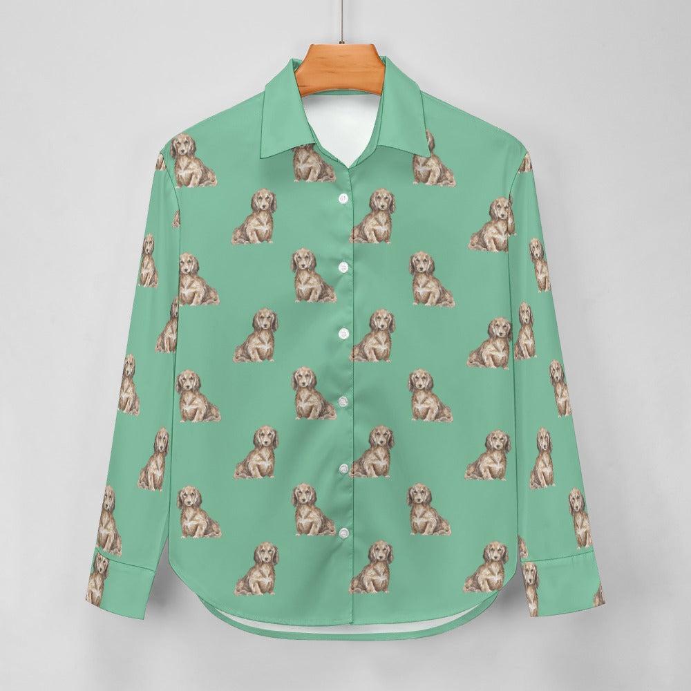 Watercolor Long Haired Chocolate Cream Dachshund Women's Shirt