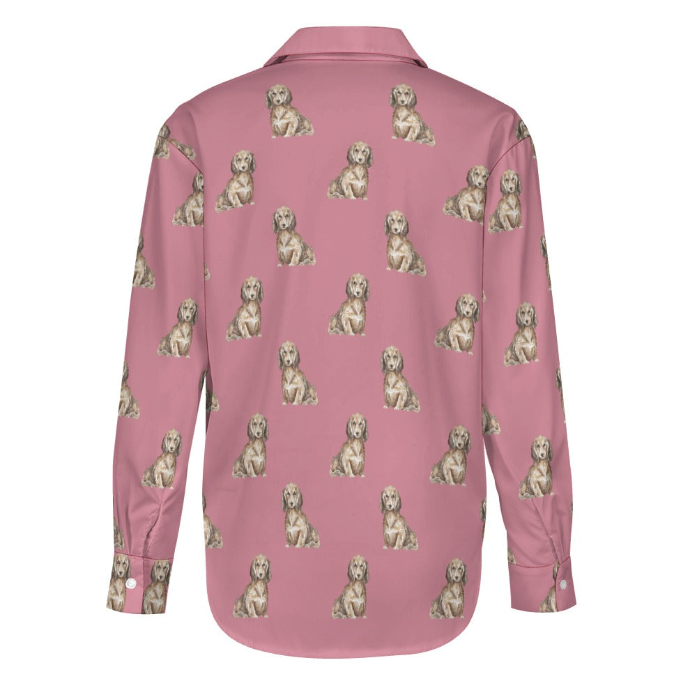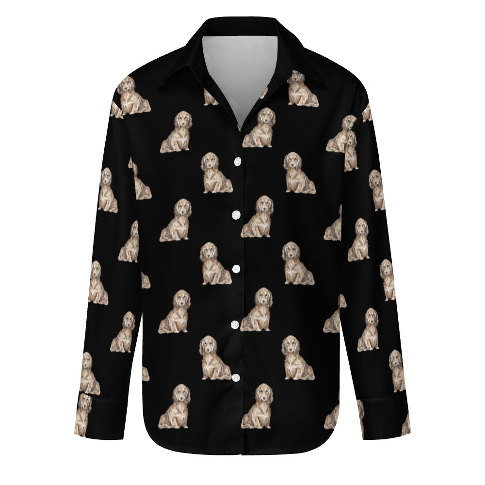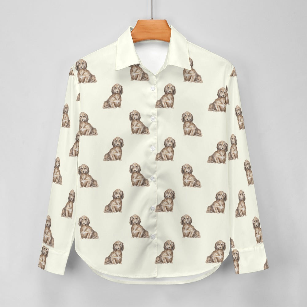 Celebrate your love for Dachshunds with our Watercolor Long Haired Chocolate Cream Dachshund Women's Shirt.