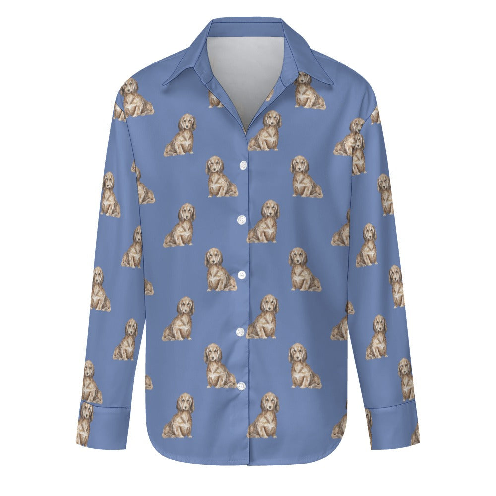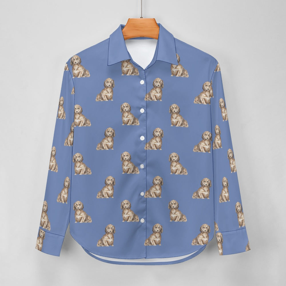 Watercolor Long Haired Chocolate Cream Dachshund Women's Shirt-Apparel-Apparel, Dachshund, Dog Mom Gifts, Shirt-Slate Blue-S-31