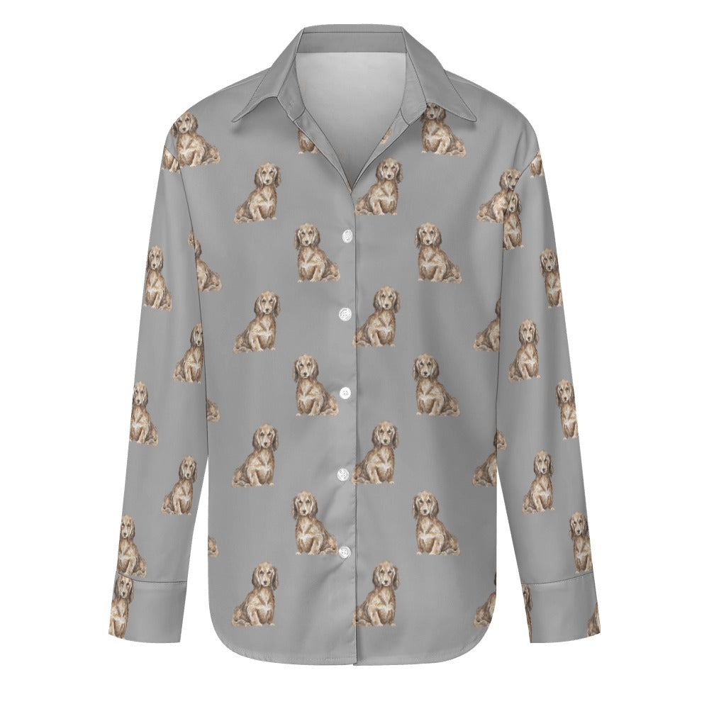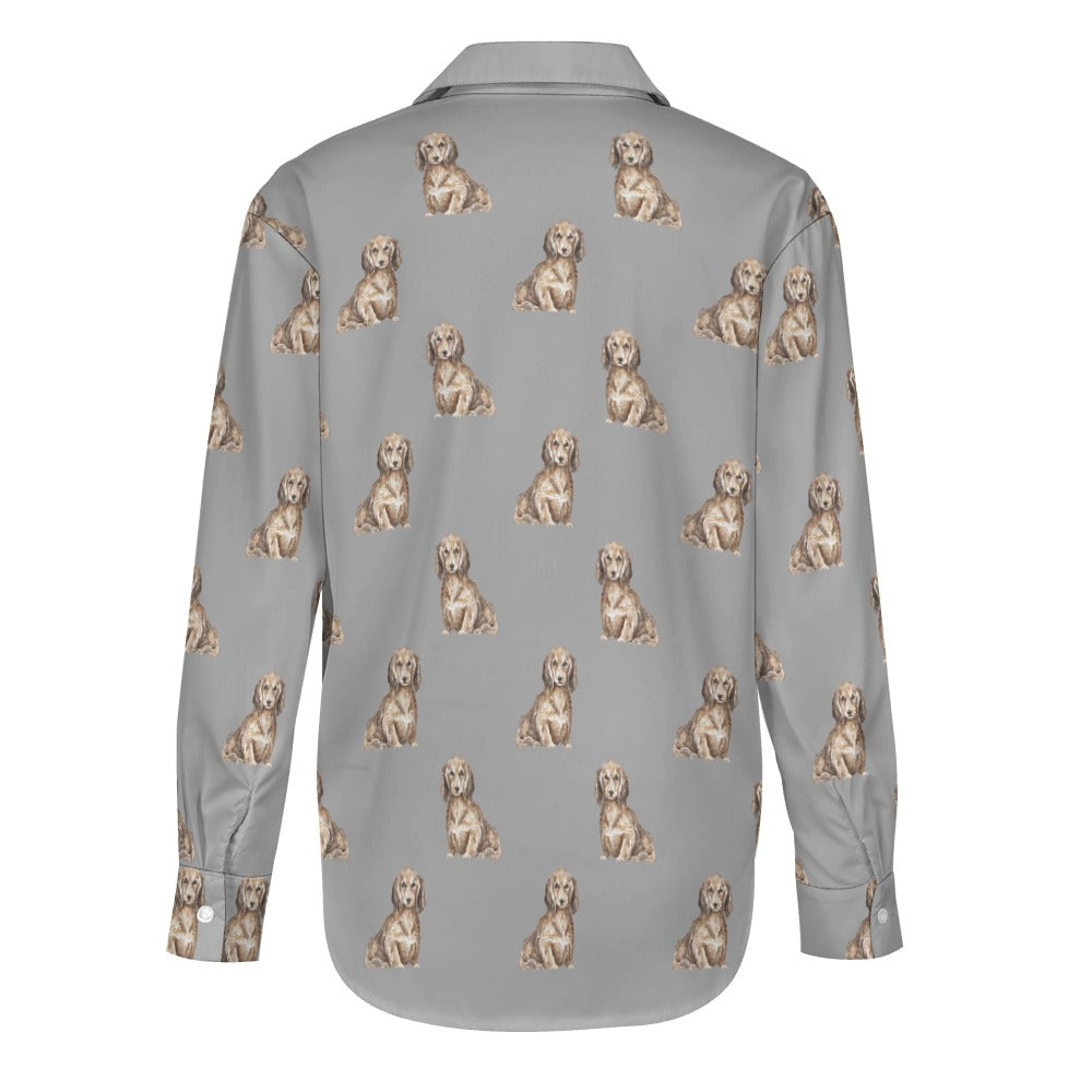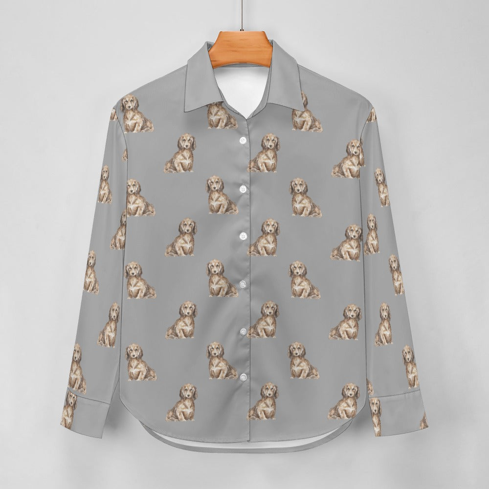 Watercolor Long Haired Chocolate Cream Dachshund Women's Shirt-Apparel-Apparel, Dachshund, Dog Mom Gifts, Shirt-Parisian Gray-S-35