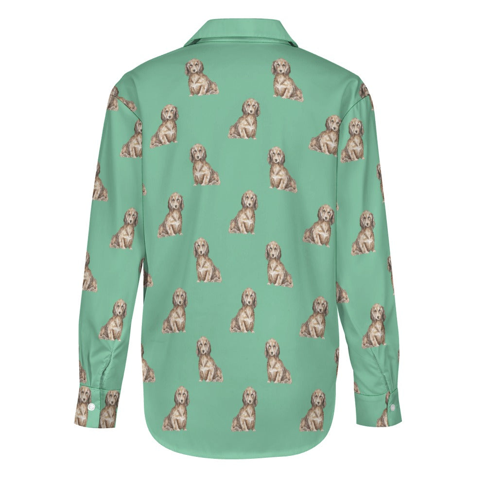 Watercolor Long Haired Chocolate Cream Dachshund Women's Shirt-Apparel-Apparel, Dachshund, Dog Mom Gifts, Shirt-Mint Green-S-32