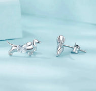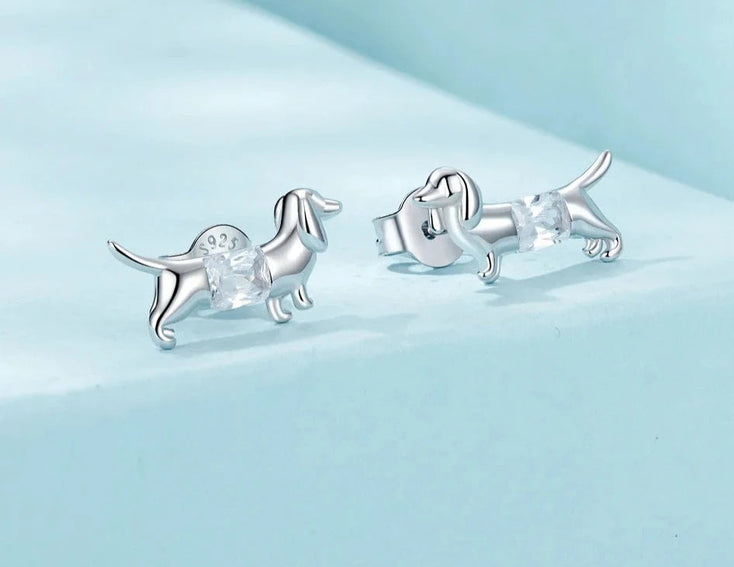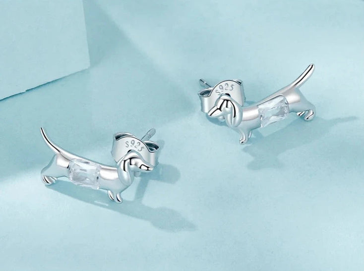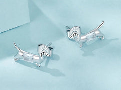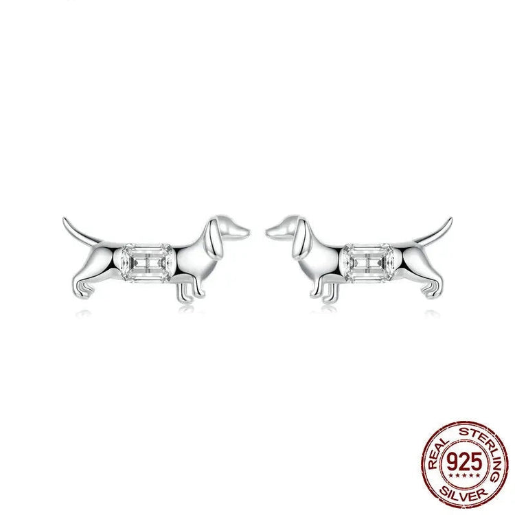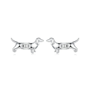 Celebrate your love for Dachshunds with our exquisite Zircon Belly Silver Dachshund Stud Earrings.
