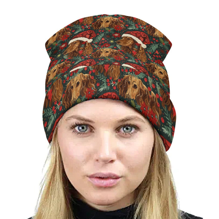 Holly Jolly Chocolate Dachshund Christmas Warm Christmas Beanie