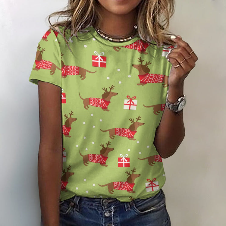 Dachshunds T Shirt for Women - Merry Christmas Red Dachshunds All Over Print