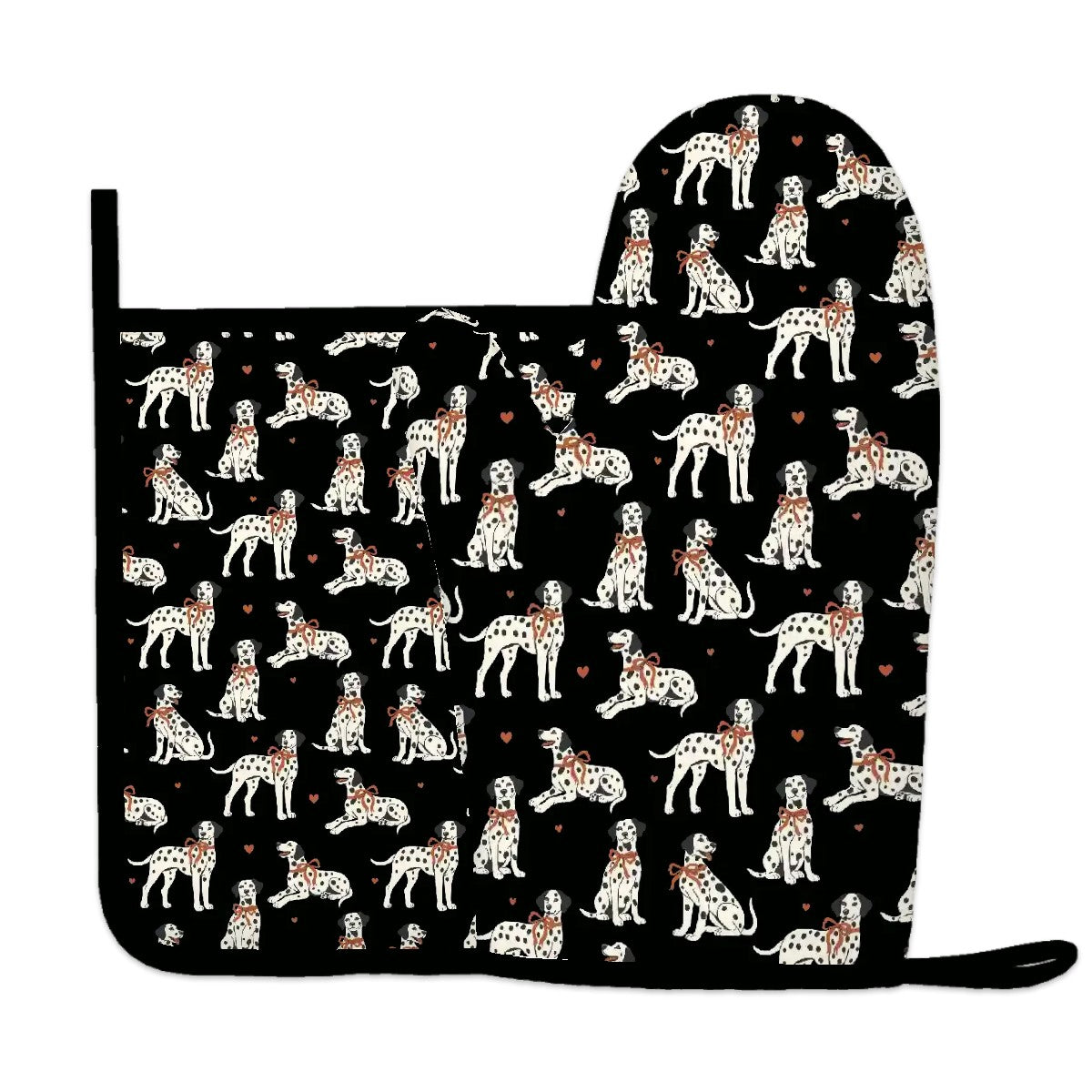 Dalmatians in Holiday Ribbons Oven Mitts and Pot Holder Set