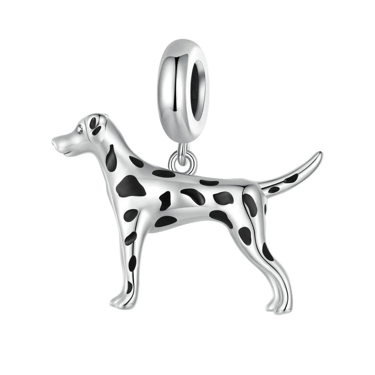 Celebrate your love for the unique and spirited Dalmatian with our Spotted Dalmatian Love Silver Charm Pendant.