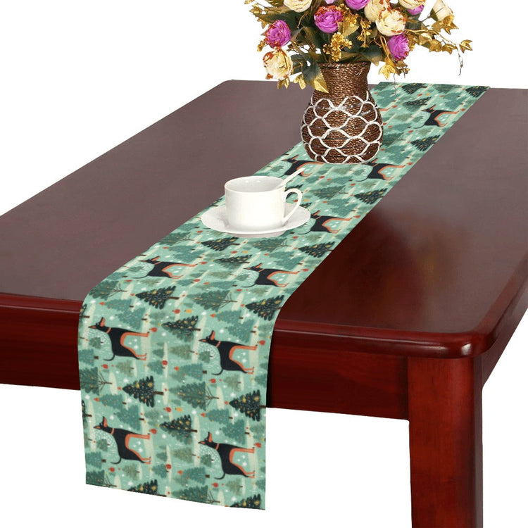 Whether adorning your dining table, mantel, or dresser, this runner adds a touch of festive tranquility to any setting. It's a thoughtful gift for Doberman enthusiasts, creating memories and moments that will last a lifetime.