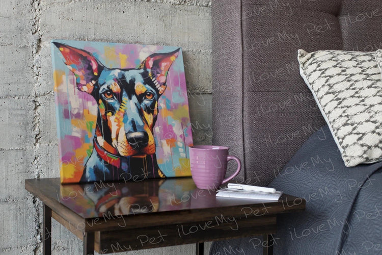 This exquisite piece of Doberman Art is made of 100% high-quality long staple cotton canvas, stretched over a sturdy, smooth, and durable wooden frame. It's an ideal decoration for various settings such as homes, bars, clubs, coffee shops, and more, adding a touch of sophistication and artistic flair to any space.
