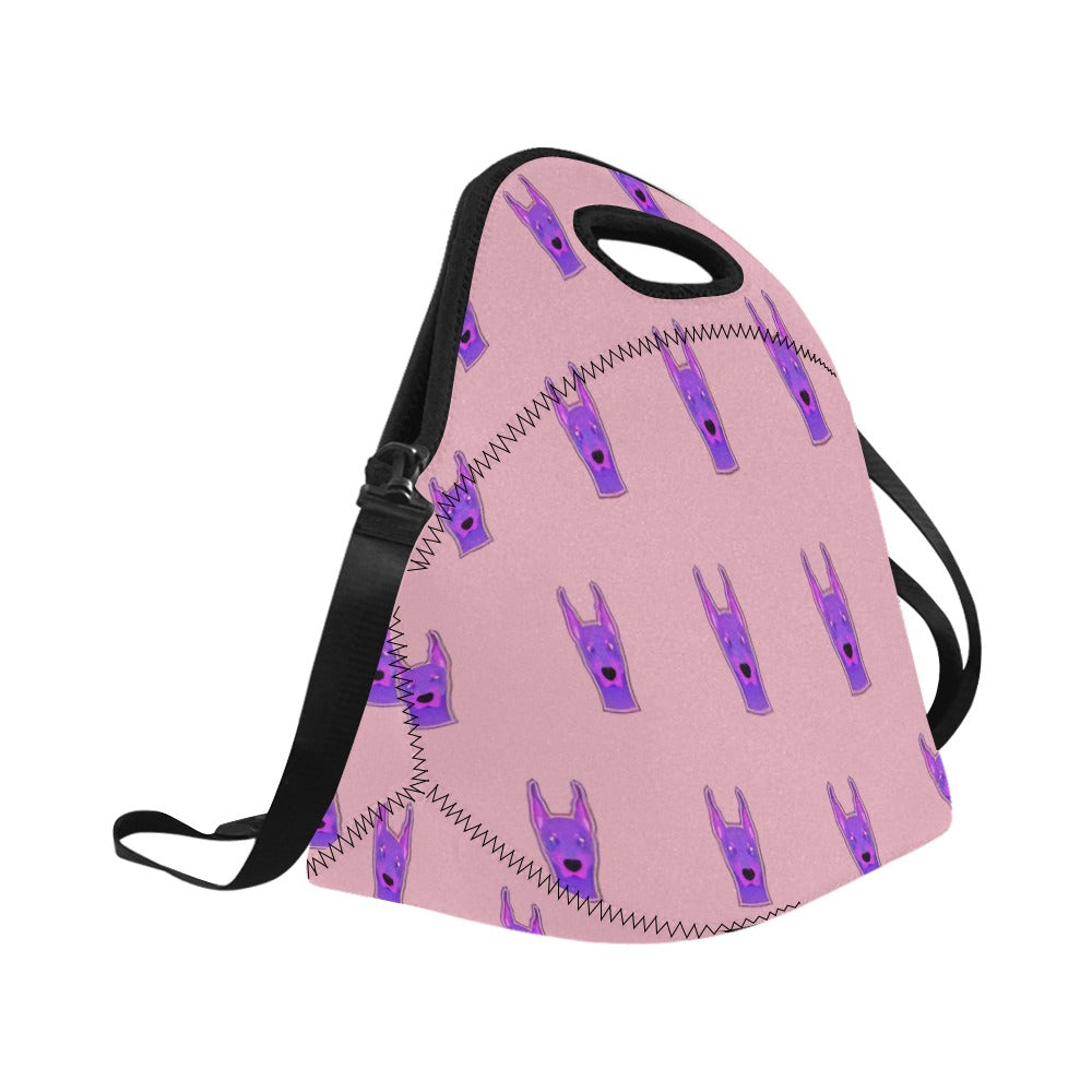 Majestic Doberman Neon Portrait Neoprene Lunch Bag-Accessories-Accessories,Bags,Doberman,Lunch Bags-Light Pink-4