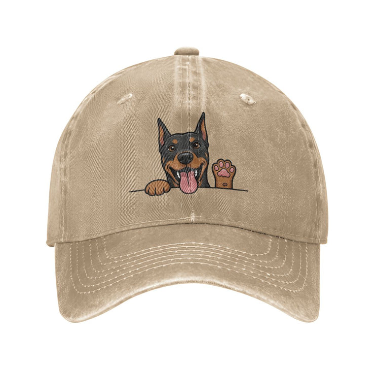 Personalized Doberman Baseball Cap - Waving Doberman Design - Match Your Dog's Coat Color