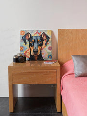 This Doberman Artwork beautifully juxtaposes the Doberman's sleek, muscular form with a vibrant explosion of colors. This contrast highlights the multifaceted nature of the Doberman, blending its focused and intelligent gaze with the whimsical, playful flowers that seem to emerge from its essence, showcasing the breed's gentle spirit and affectionate nature.