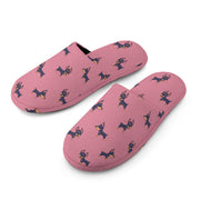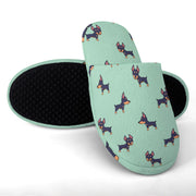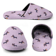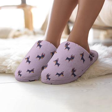 Our slippers are available in four delightful colors - Dusty Rose Pink, Thristle Purple, Mint Green, and Periwinkle Blue - each featuring the cutest Dobermans winking back at you. This adorable design is not just about style, but also about showcasing your love for this loyal and intelligent breed.