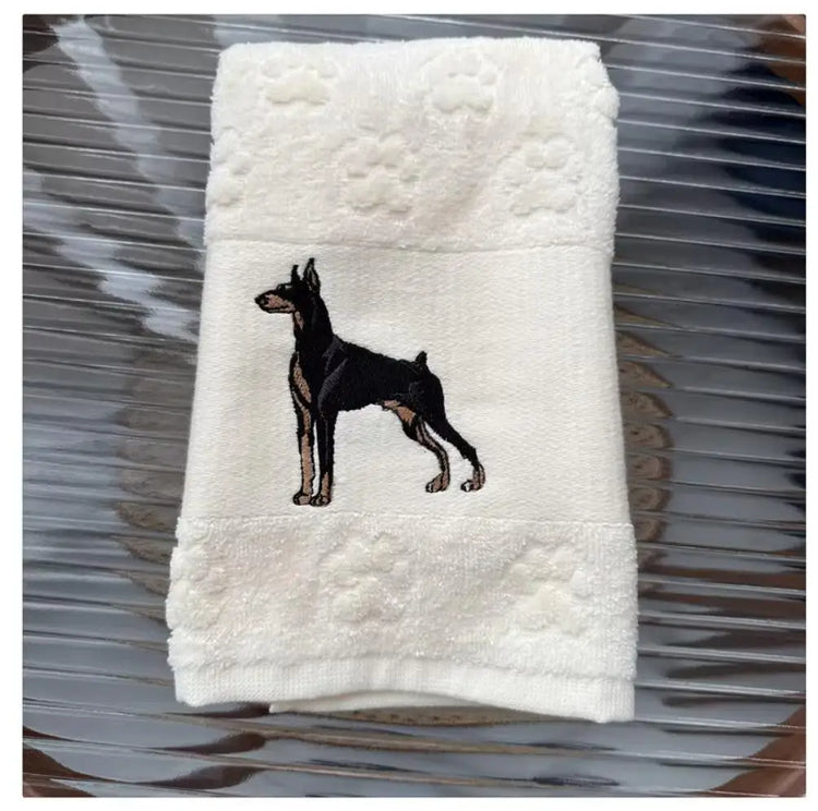 Wrap yourself in love with our Doberman Love Large Embroidered Cotton Towel, the perfect tribute to your furry friend! This super-soft towel features a beautifully embroidered Doberman design, making it a must-have for dog lovers.