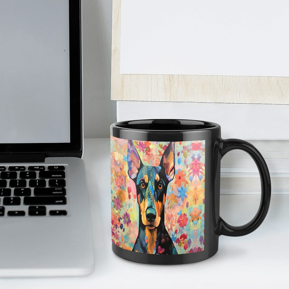 Floral Fantasy Doberman Coffee Mug-ONE SIZE-Black-1