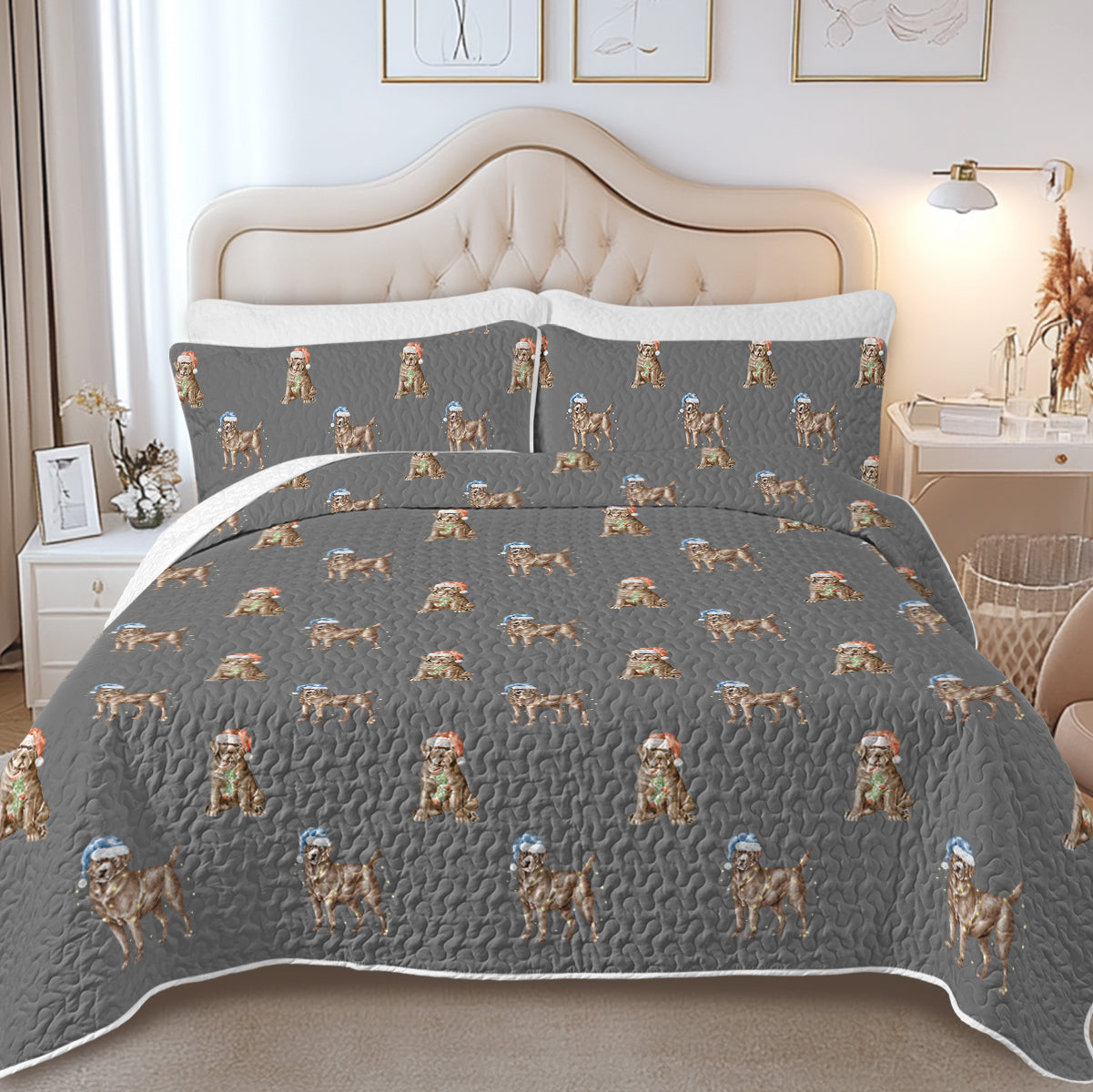 Wrap yourself in the warmth of holiday cheer with our Watercolor Chocolate Labrador Christmas Quilted Bedding Set.