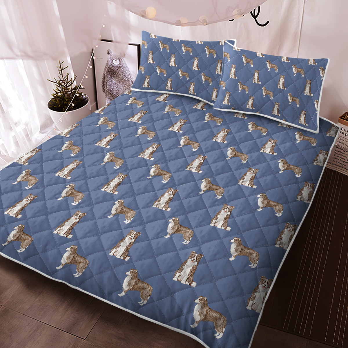 Watercolor Chocolate Red Border Collies Quilted Bedding Set