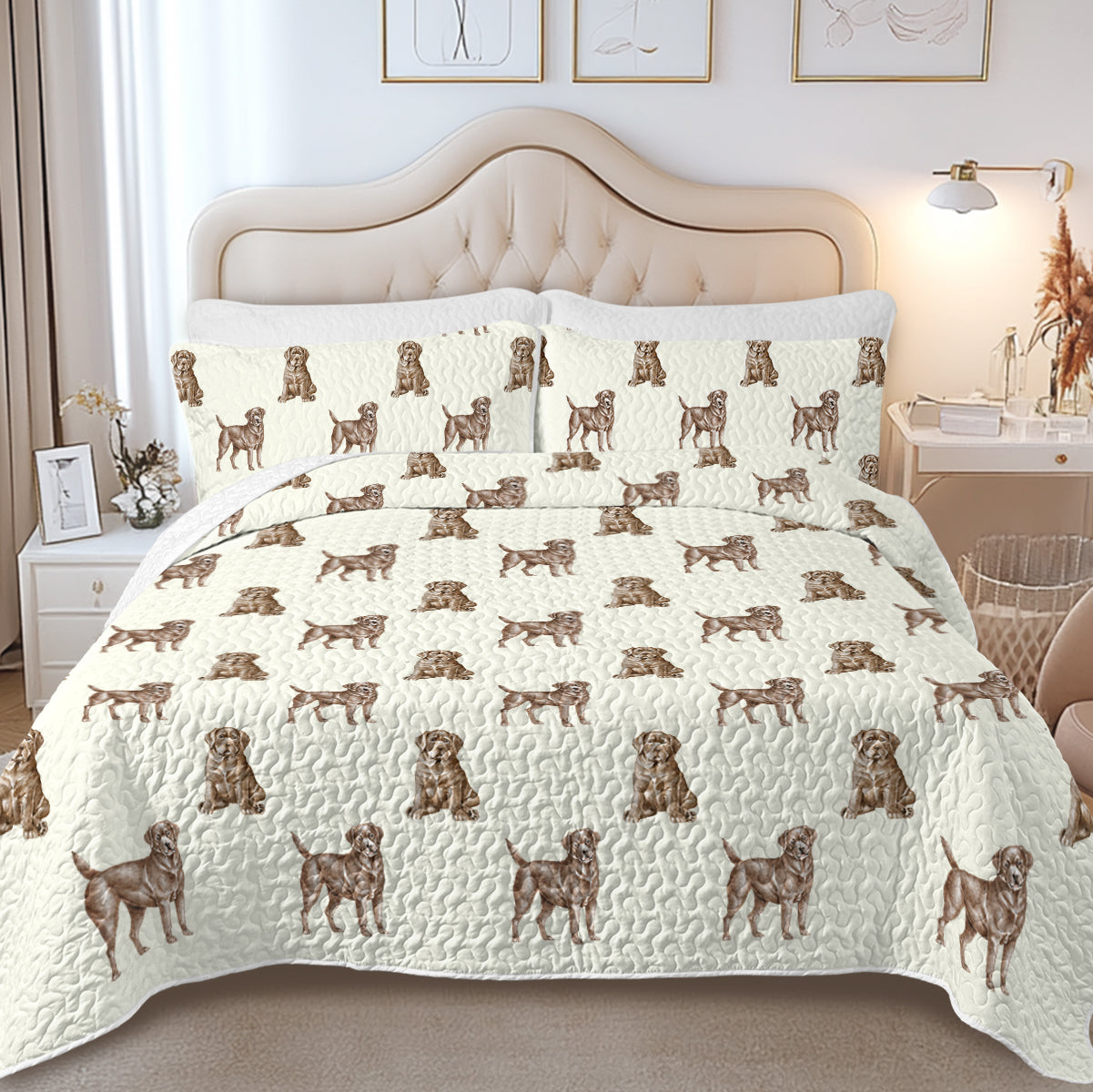 Watercolor Essence Chocolate Labradors Quilted Bedding Set-Bedding-Bedding,Blankets,Christmas,Home Decor-5