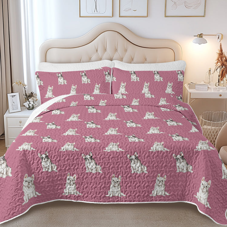 Watercolor Pied and White French Bulldogs Quilted Bedding Set