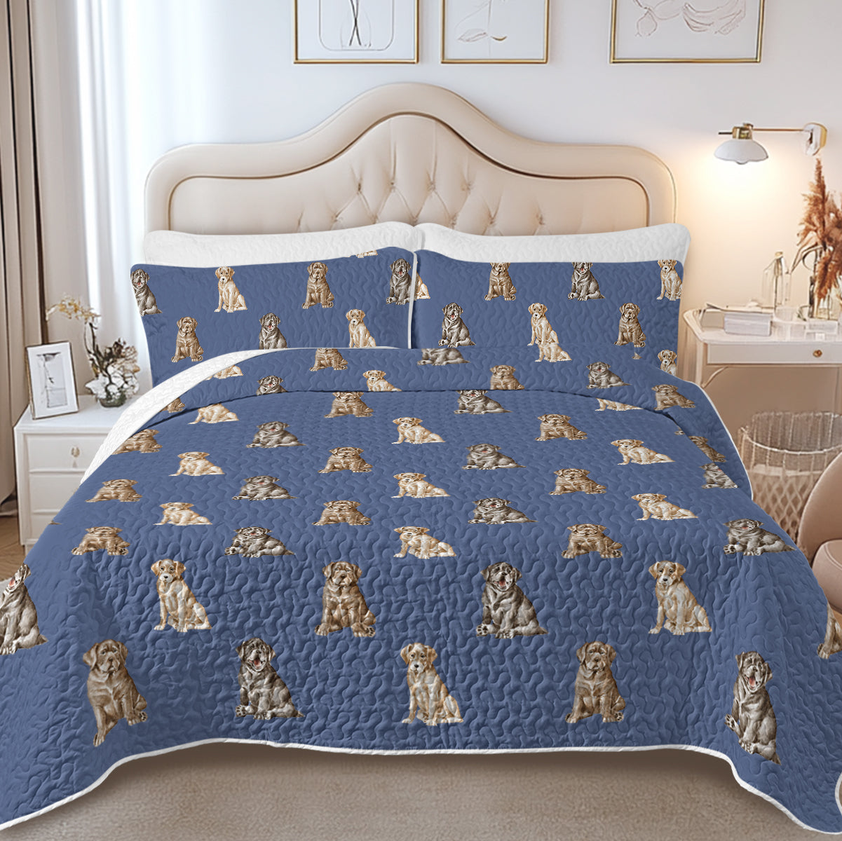 Available in 5 colors, including Dusty Pink and Cornflower Blue, it complements any bedroom decor. Unleash your furry love with our unique Labrador Gifts collection.
