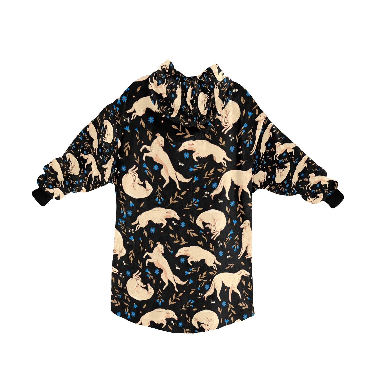 Embrace comfort and elegance with our Flower Garden Borzoi Blanket Hoodie.