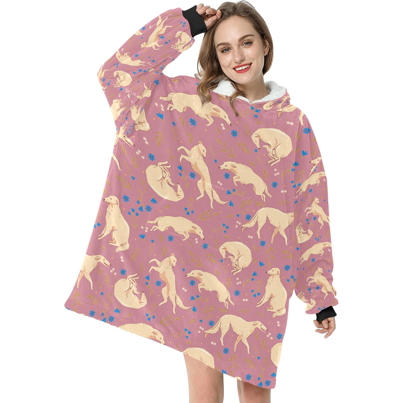 Flower Garden Borzoi Blanket Hoodie-Blanket-Apparel, Blanket Hoodie, Blankets, Borzoi, Dog Mom Gifts-1