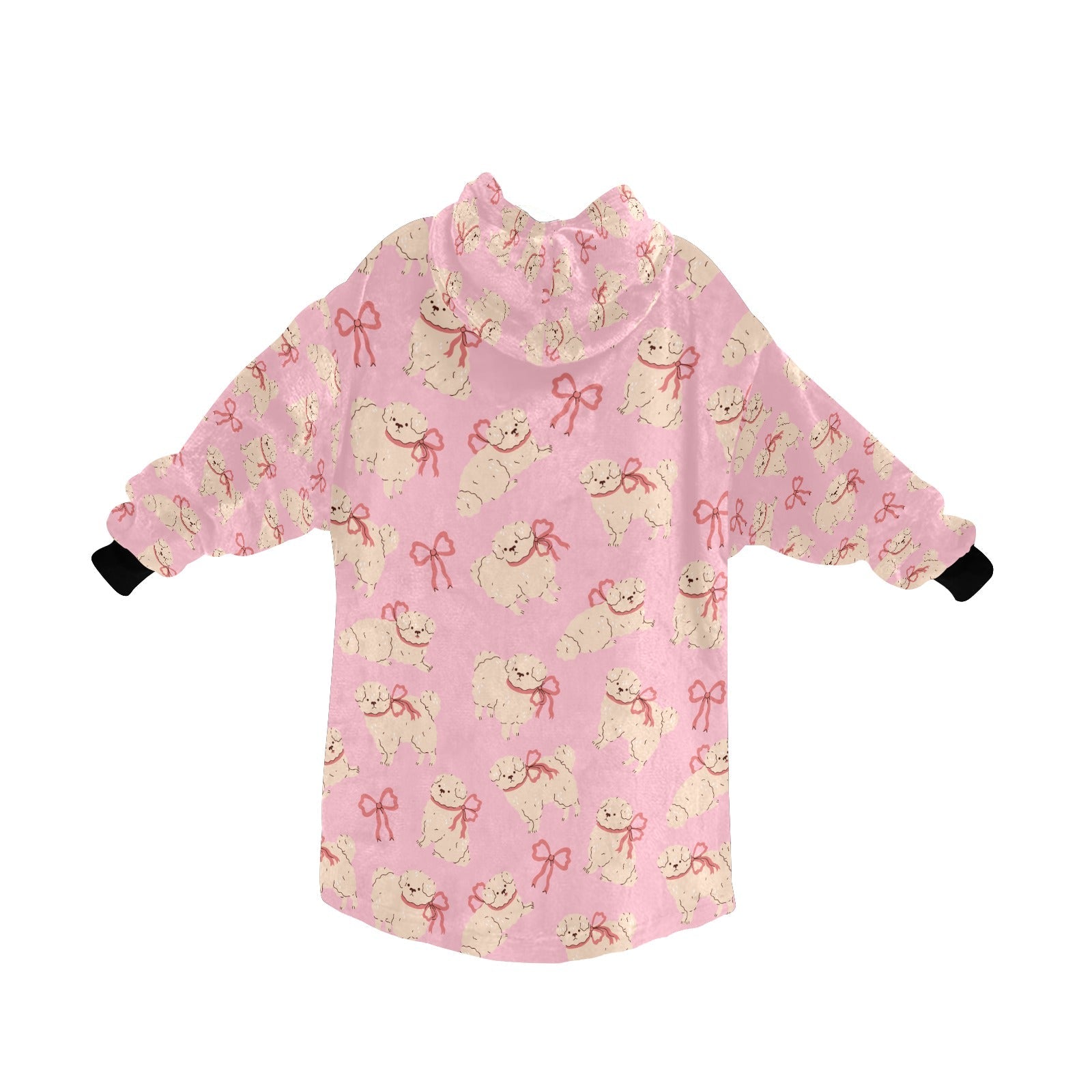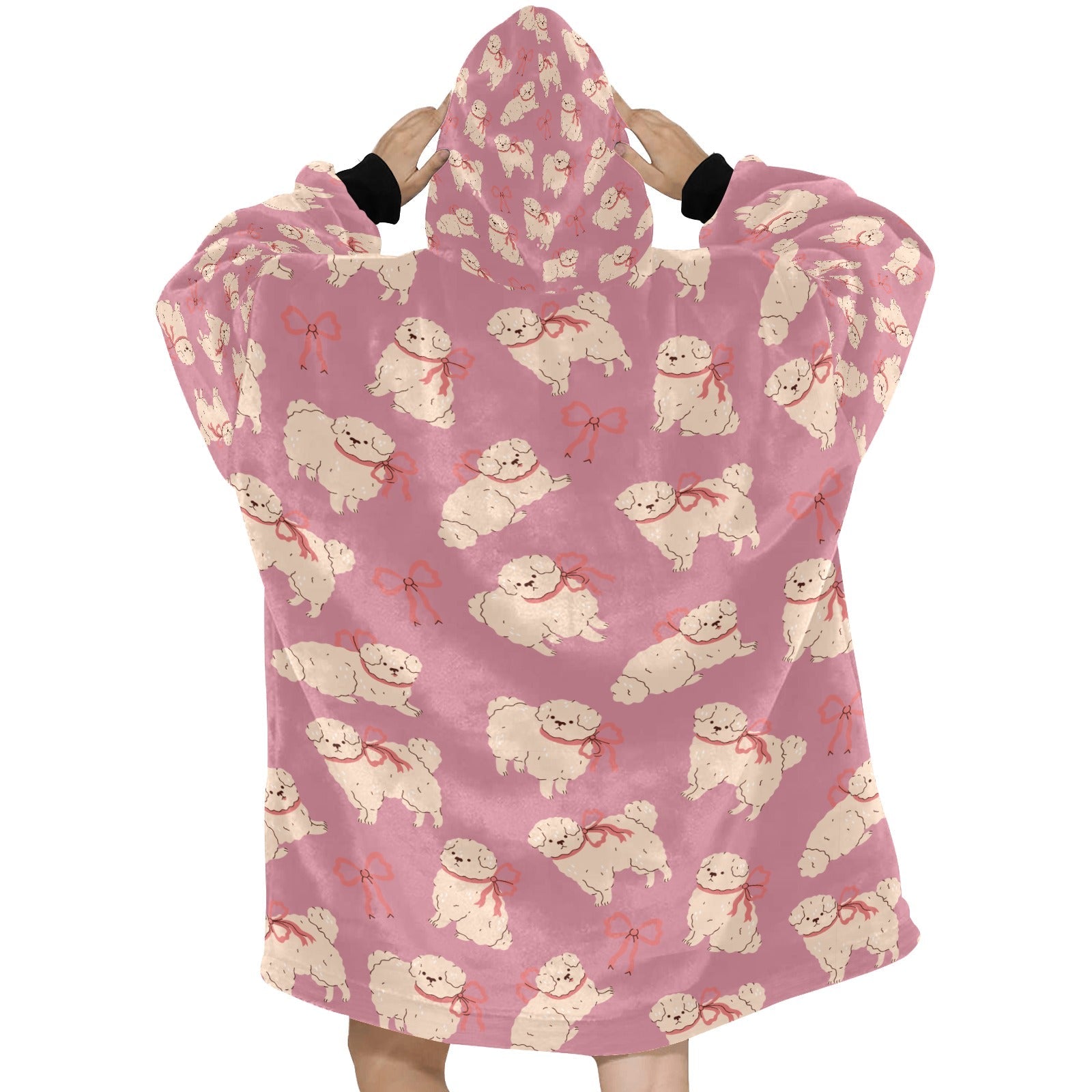 Fluffy Maltese Bliss with Bows Blanket Hoodie-Pink-ONE SIZE-3