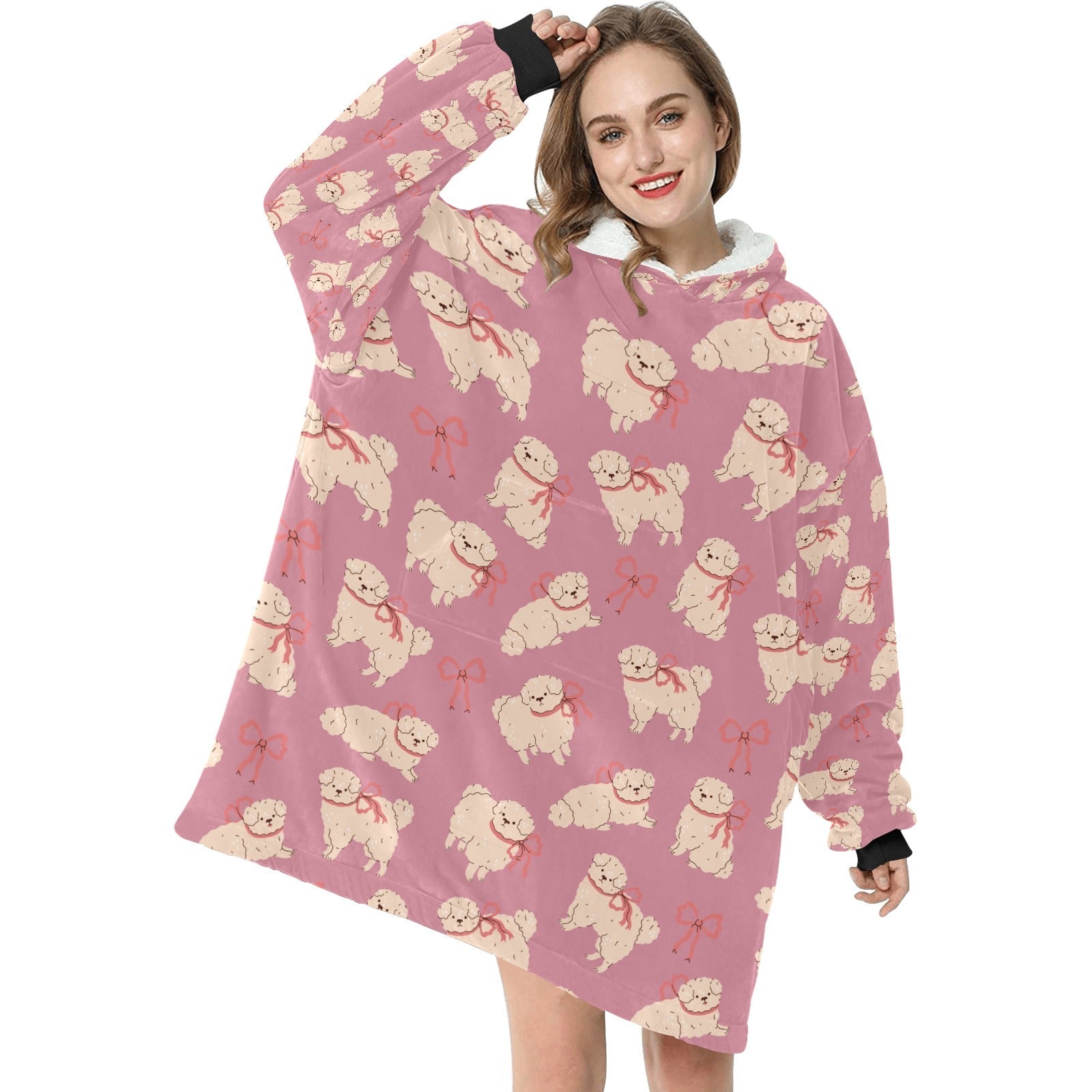 Fluffy Maltese Bliss with Bows Blanket Hoodie-PaleVioletRed-ONE SIZE-9