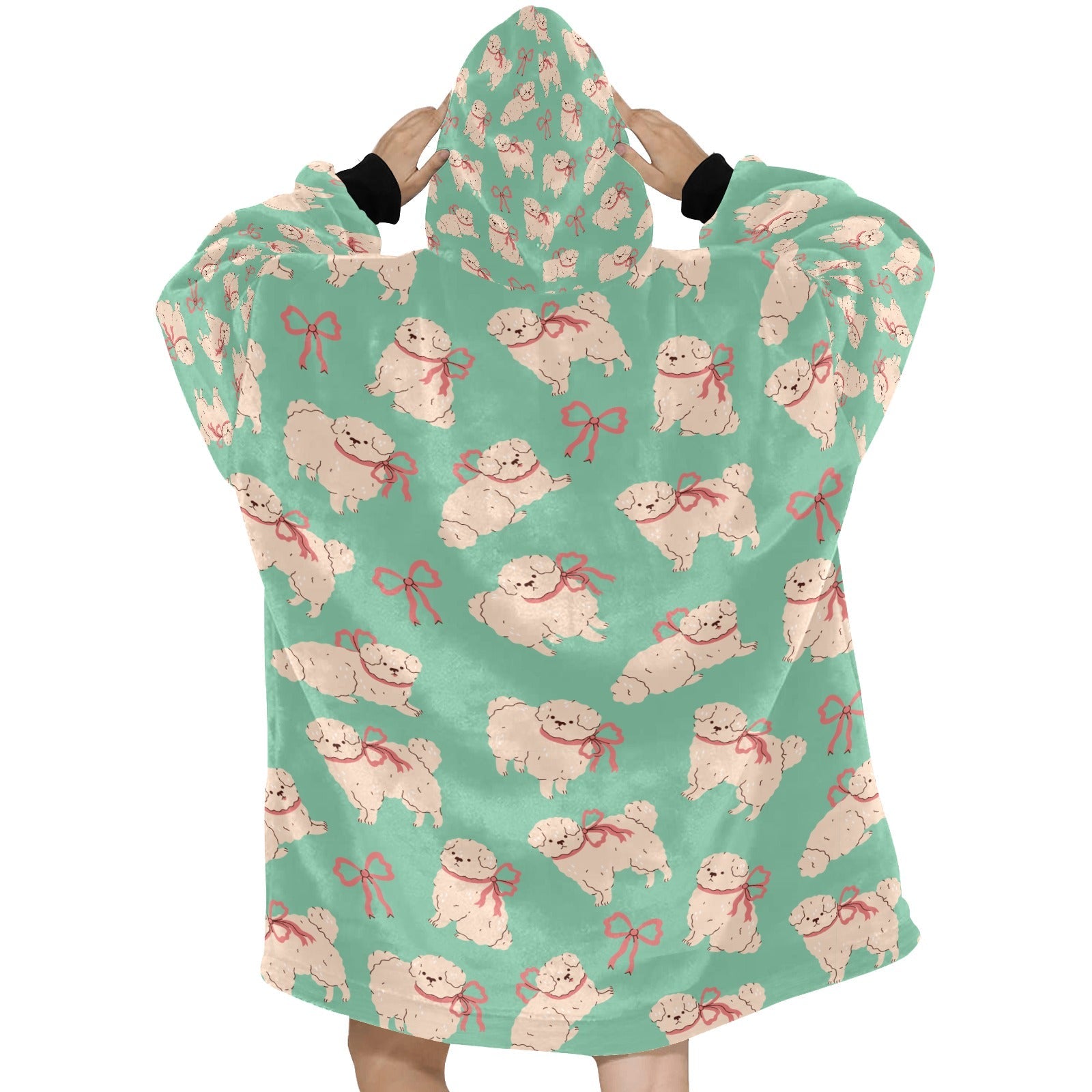 Fluffy Maltese Bliss with Bows Blanket Hoodie-MediumAquaMarine-ONE SIZE-20
