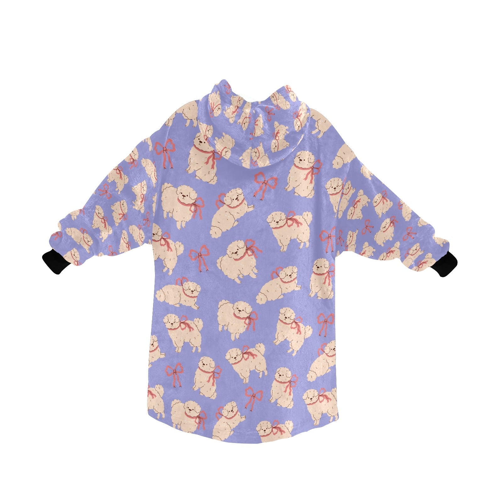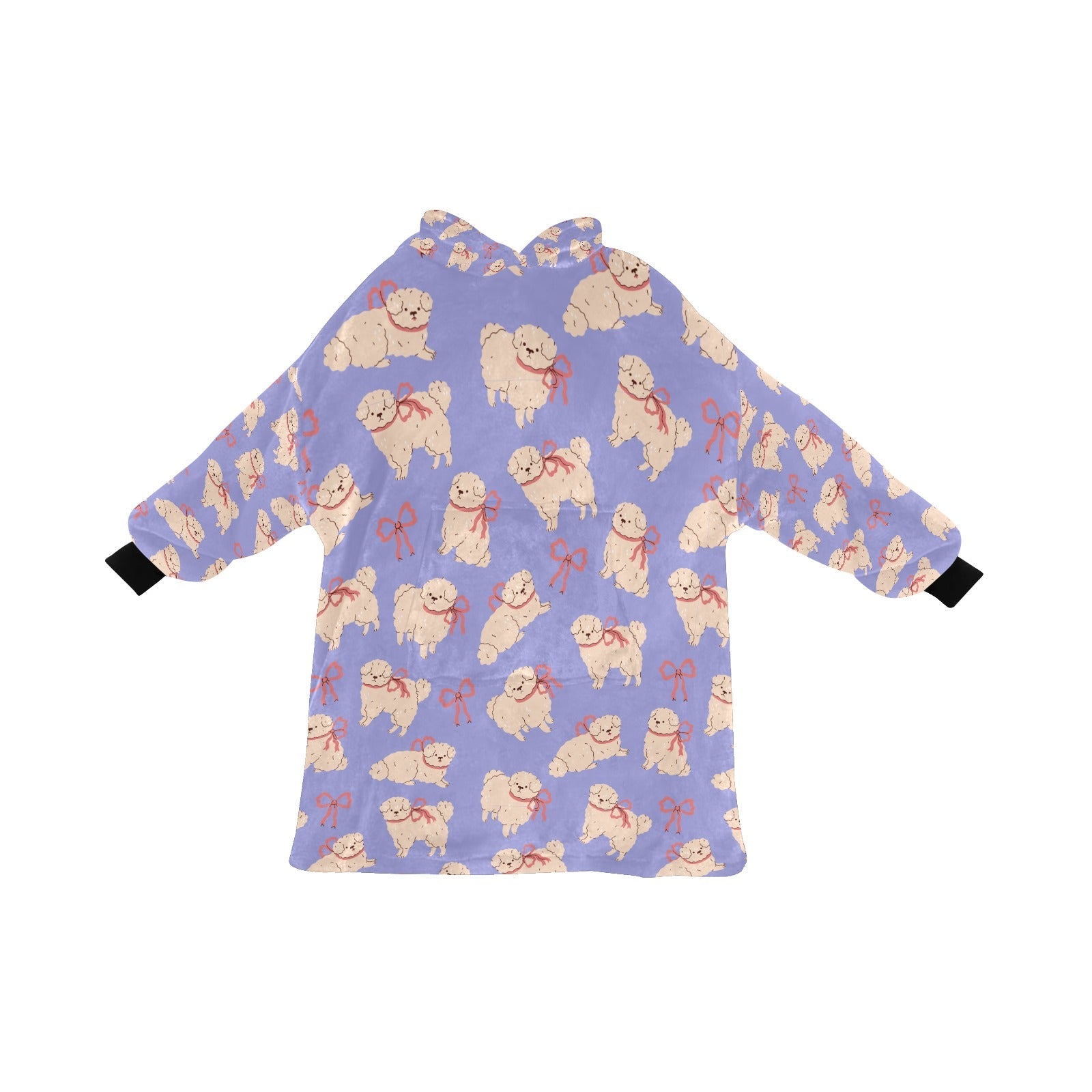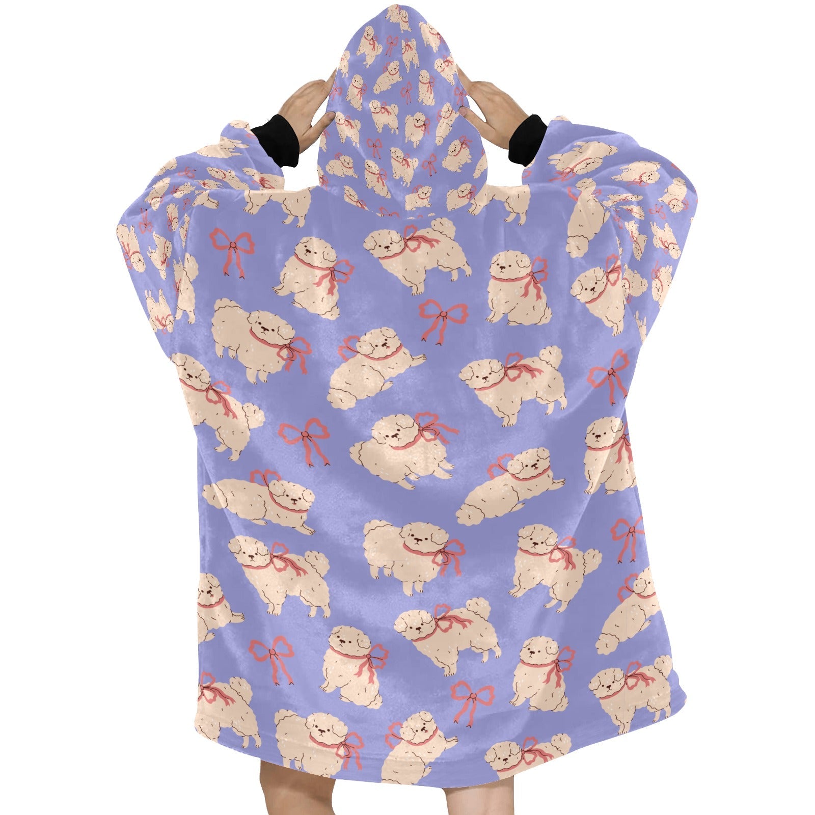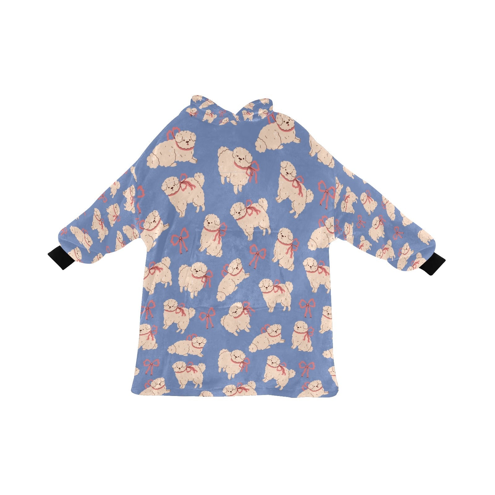 Fluffy Maltese Bliss with Bows Blanket Hoodie-CornflowerBlue_1-ONE SIZE-25