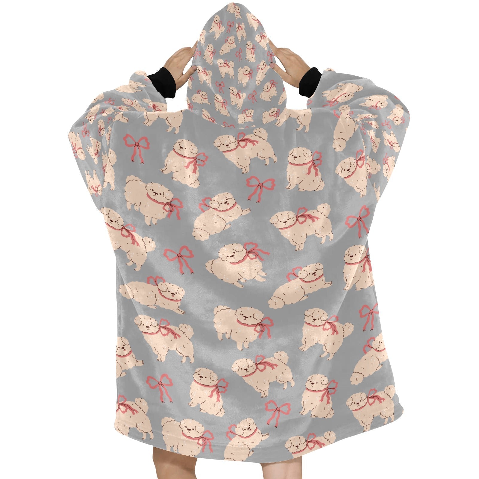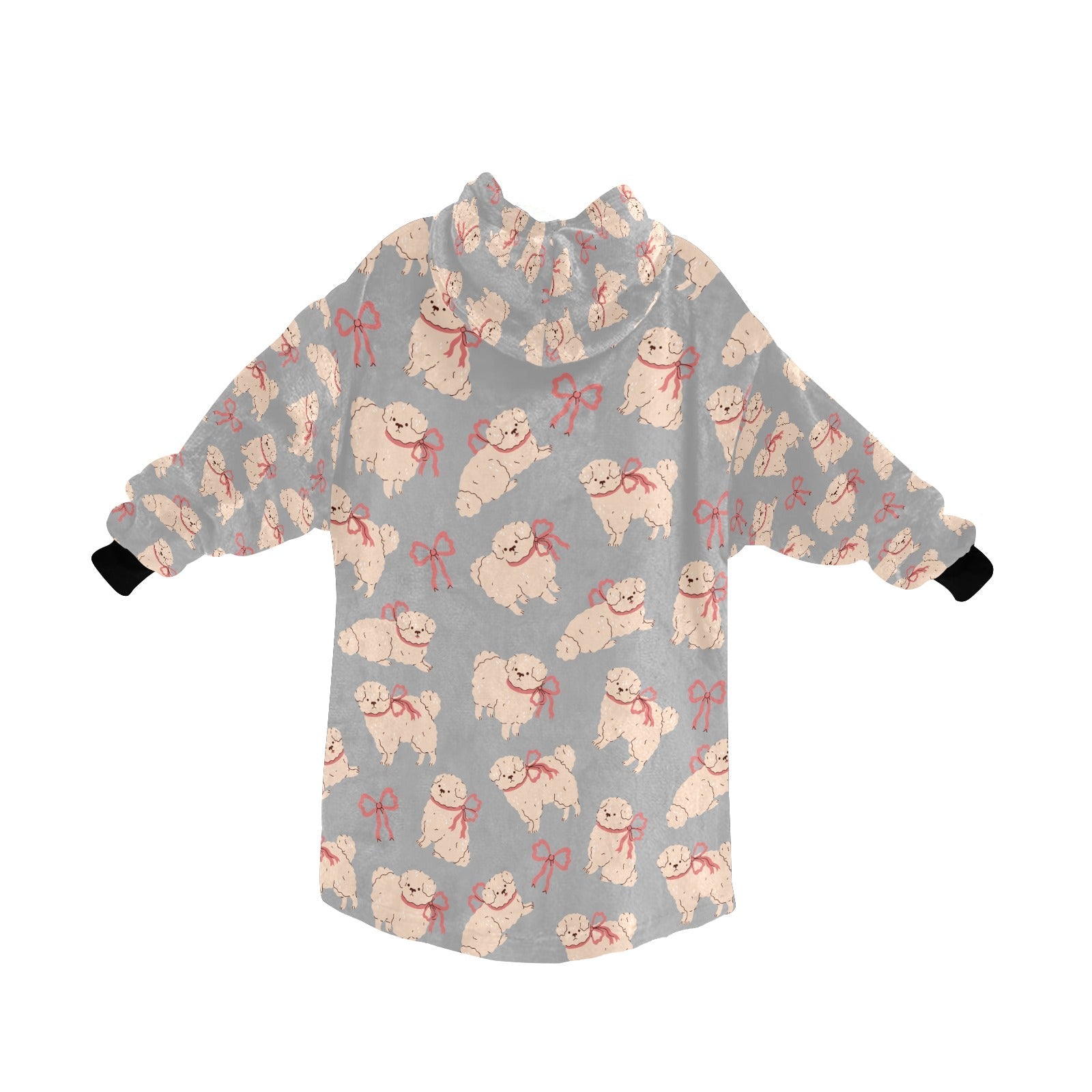 Fluffy Maltese Bliss with Bows Blanket Hoodie-DarkGray-ONE SIZE-29