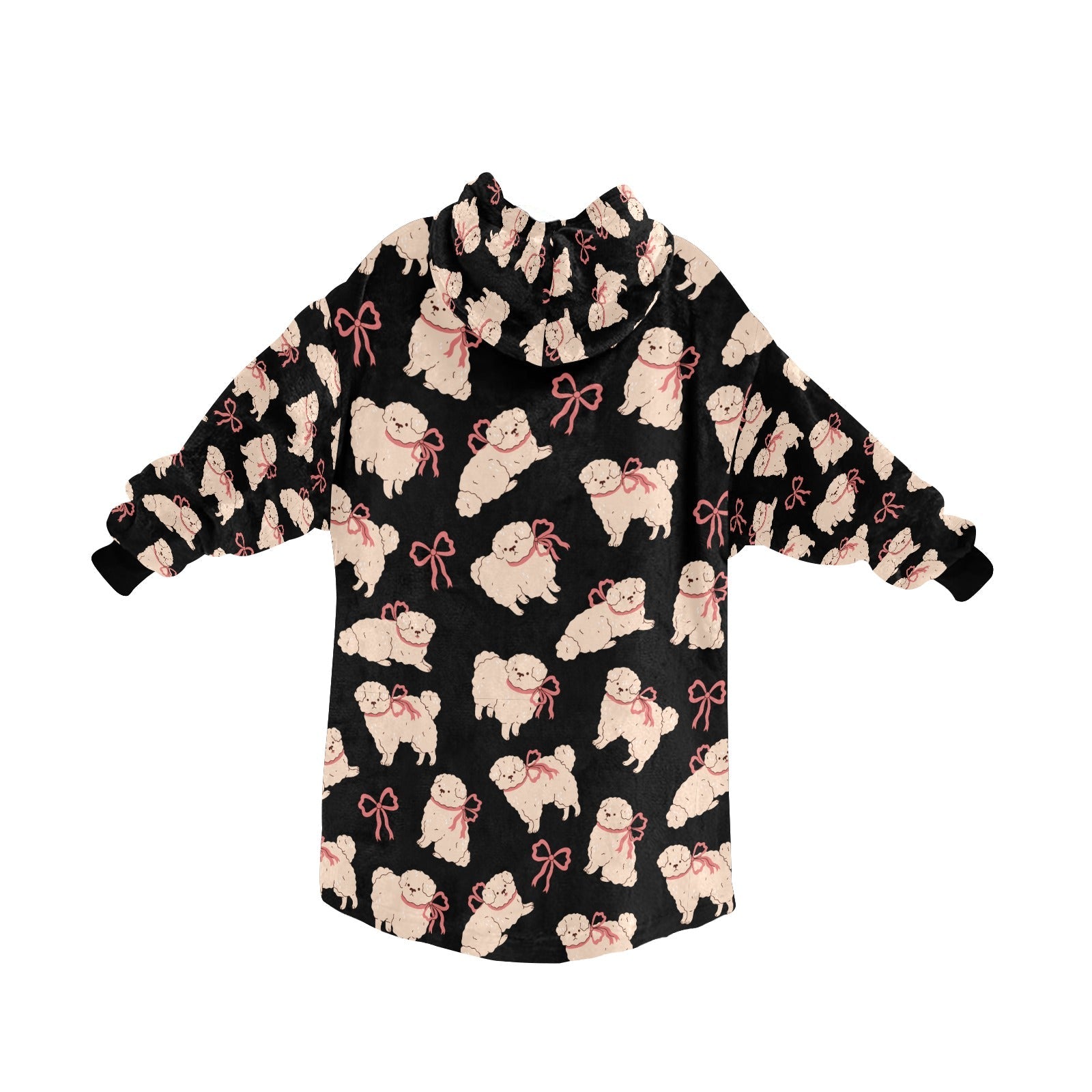 Fluffy Maltese Bliss with Bows Blanket Hoodie