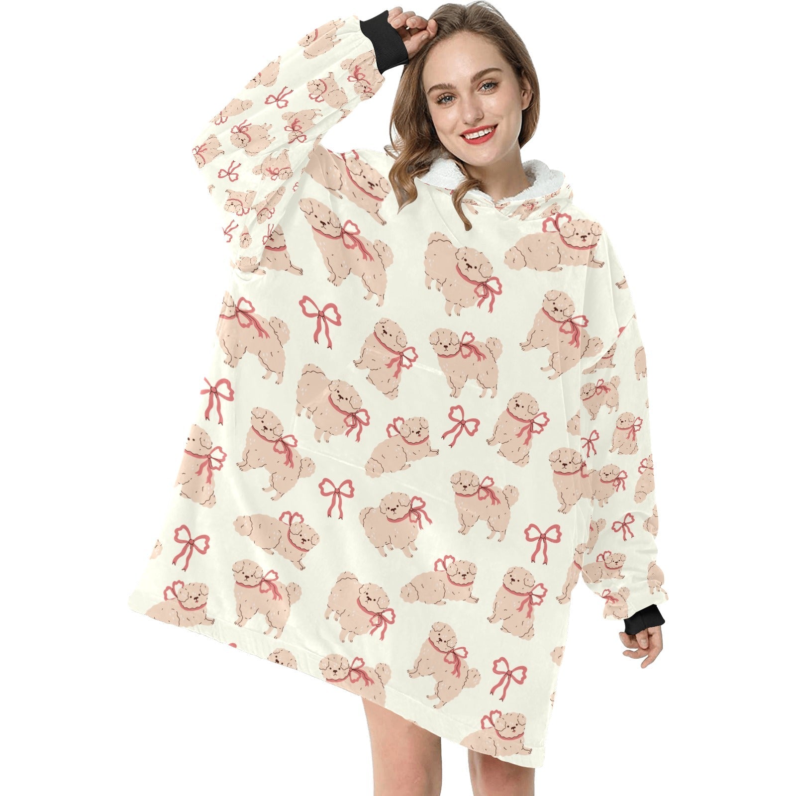 Fluffy Maltese Bliss with Bows Blanket Hoodie-Ivory-ONE SIZE-1