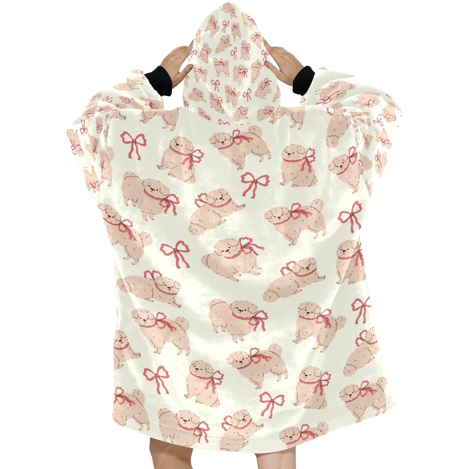 Fluffy Maltese Bliss with Bows Blanket Hoodie-32