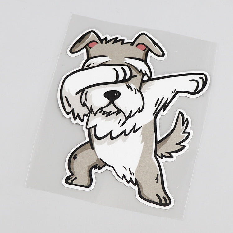 Image of a super cute Schnauzer car sticker in dabbing Schnauzer design