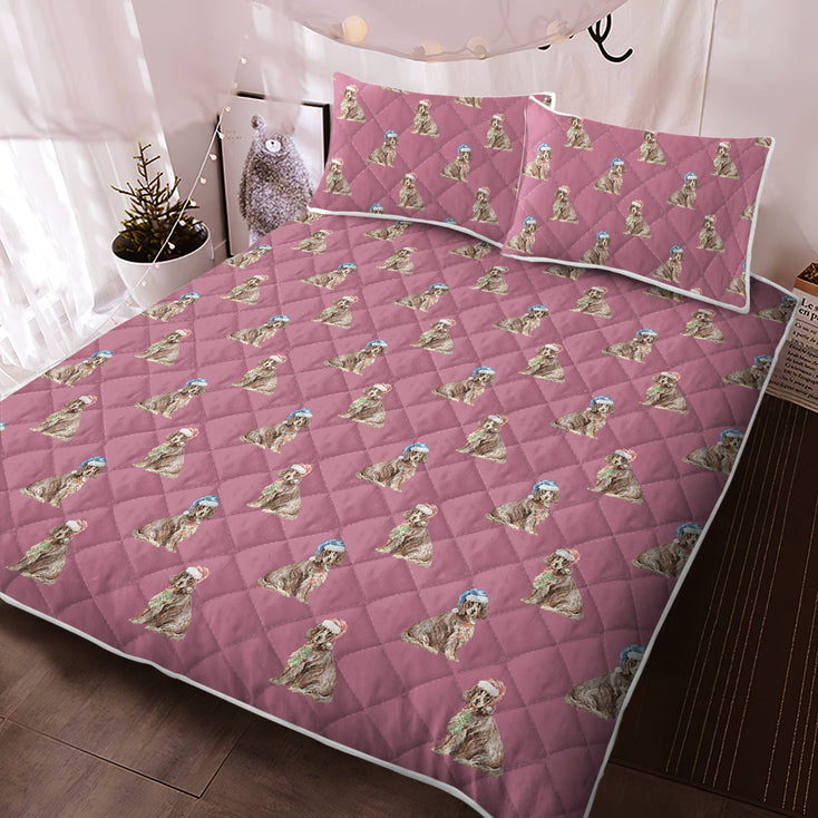 Watercolor Liver Tan Cocker Spaniels Christmas Quilted Bedding Set