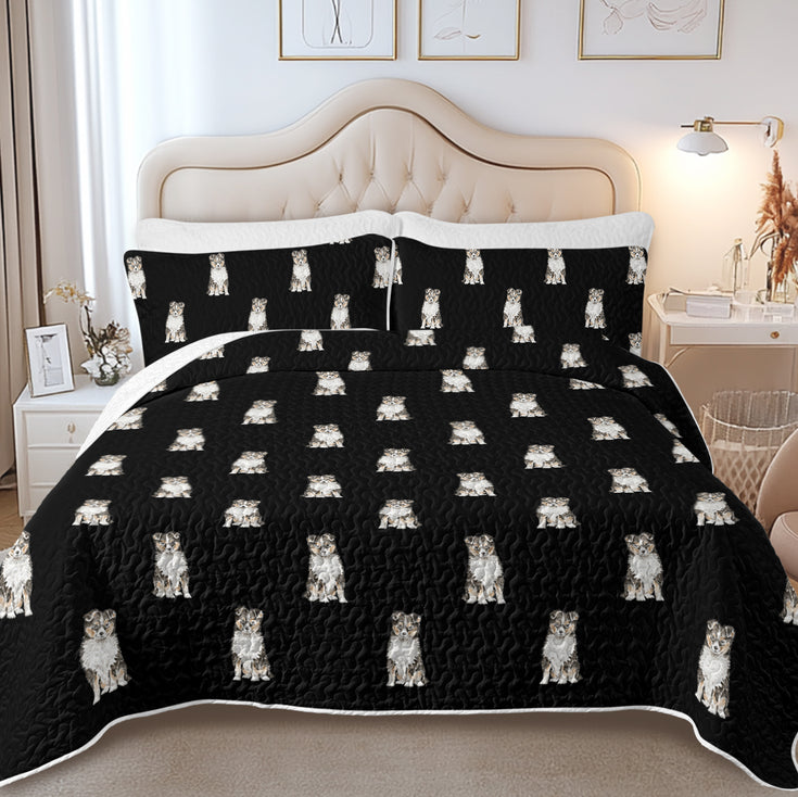 Watercolor Tri Color Sheltie Collie Puppies Quilted Bedding Set