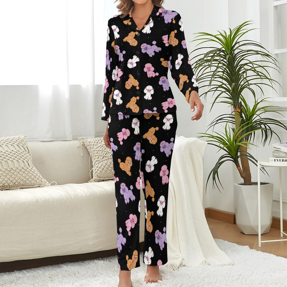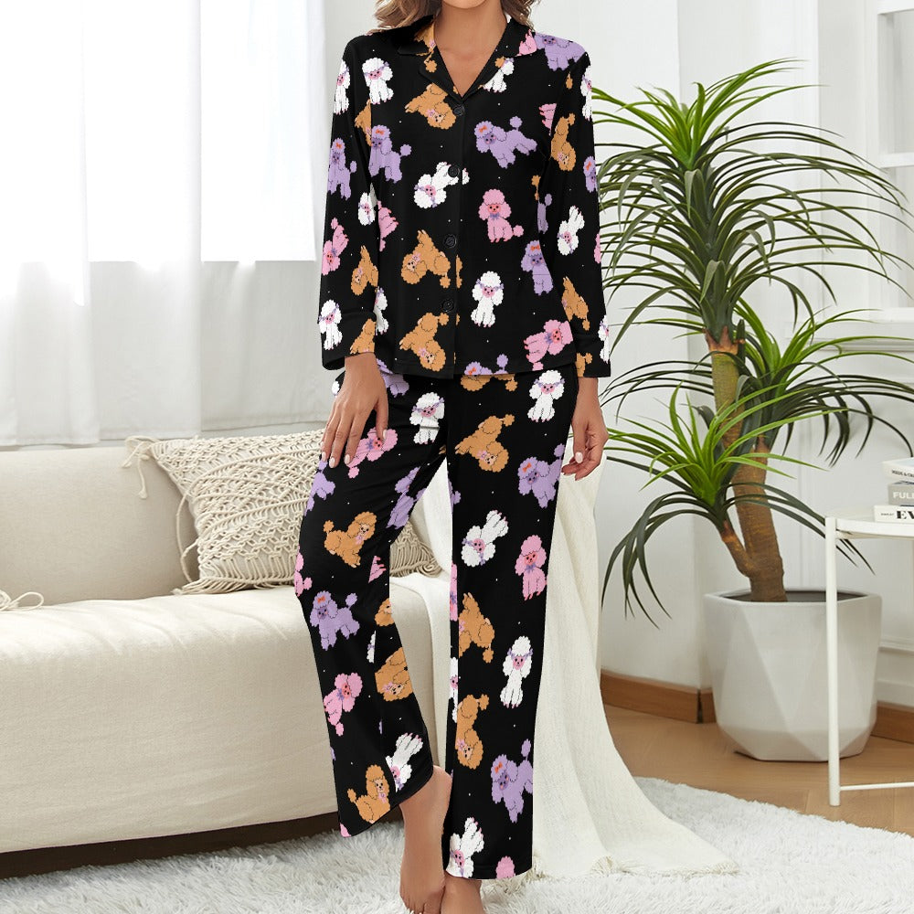 Colorful Poodles Love Pajamas Set for Women-Pajamas-Apparel, Christmas, Dog Mom Gifts, Pajamas, Poodle-Midnight Black-XS-9