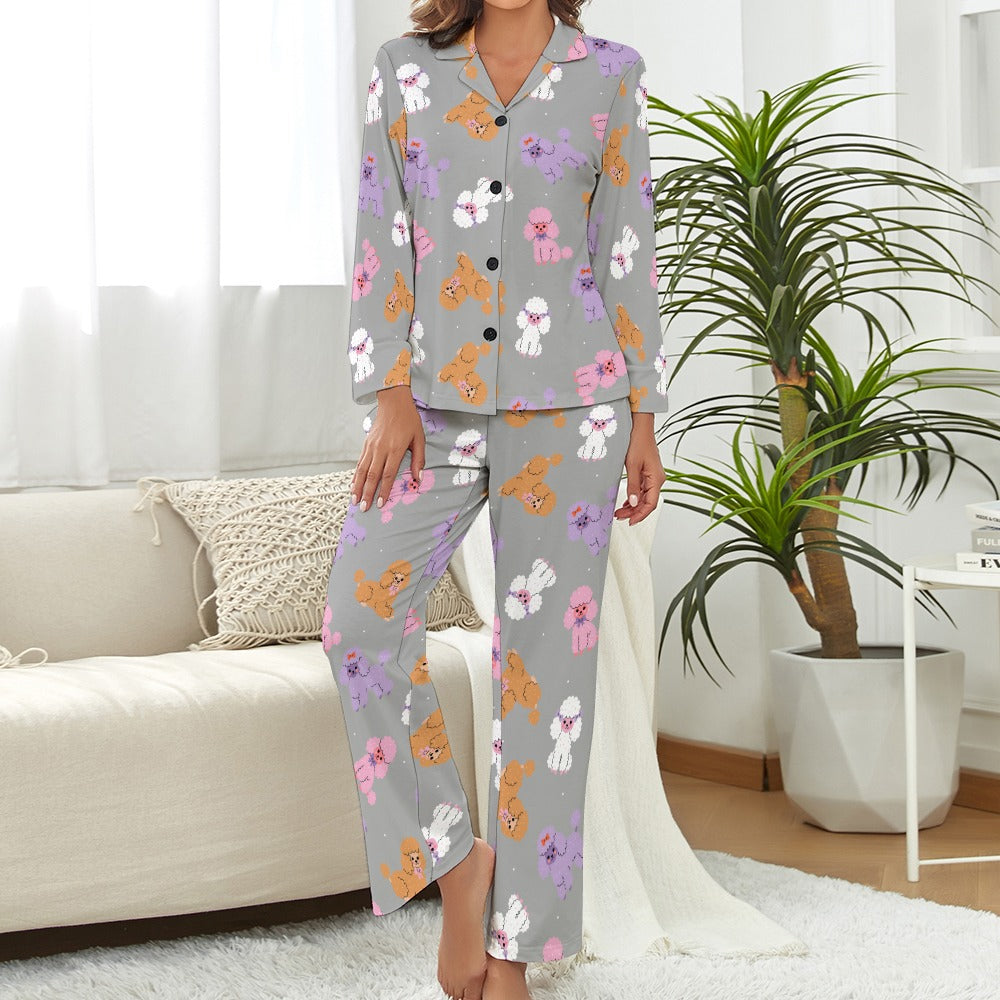 Colorful Poodles Love Pajamas Set for Women-Pajamas-Apparel, Christmas, Dog Mom Gifts, Pajamas, Poodle-Parisian Gray-XS-8