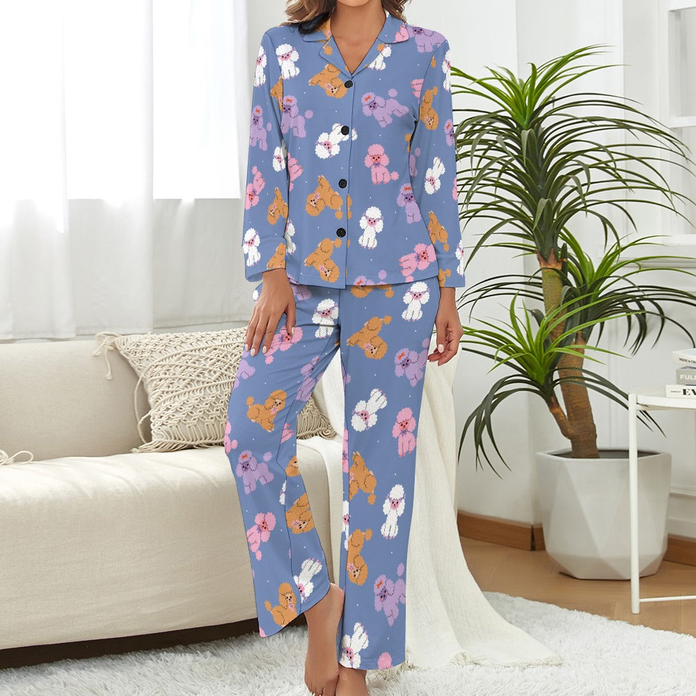 Colorful Poodles Love Pajamas Set for Women-Pajamas-Apparel, Christmas, Dog Mom Gifts, Pajamas, Poodle-Sky Blue-XS-1