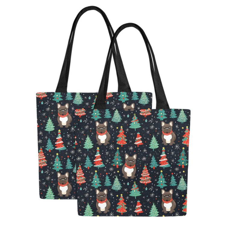 Celebrate the festive season in style with our Black / Brindle French Bulldog Festive Frolic Large Canvas Tote Bags - Set of 2.