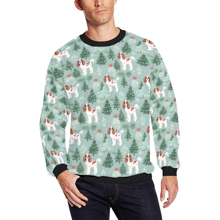 The serene backdrop of delicate snowflakes and frosty Christmas trees highlights the spaniels' rich chestnut and white coats. Festive bows and pine needles evoke the cozy feel of a Christmas forest. This sweatshirt is a loving tribute to the breed's elegance and festive cheer. It's perfect for creating memories and moments that will last a lifetime.