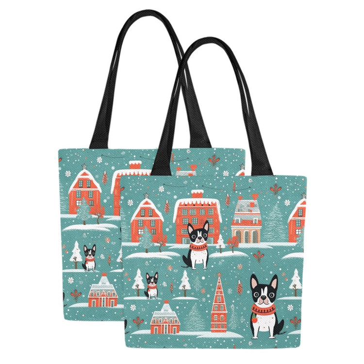 Boston Terrier Winter Wonderland Large Christmas Tote Bags - Set of 2