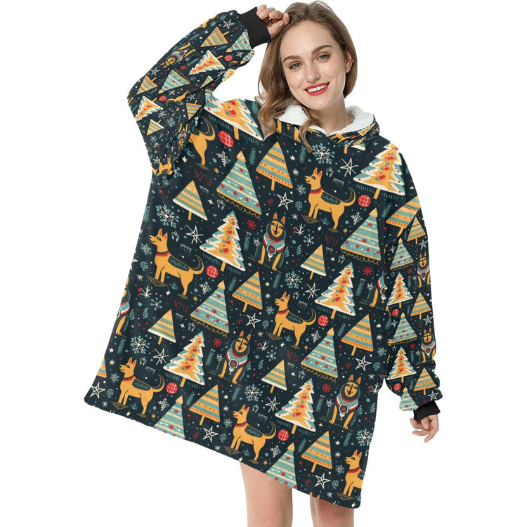 Christmas Groove Guardian German Shepherds Blanket Hoodie