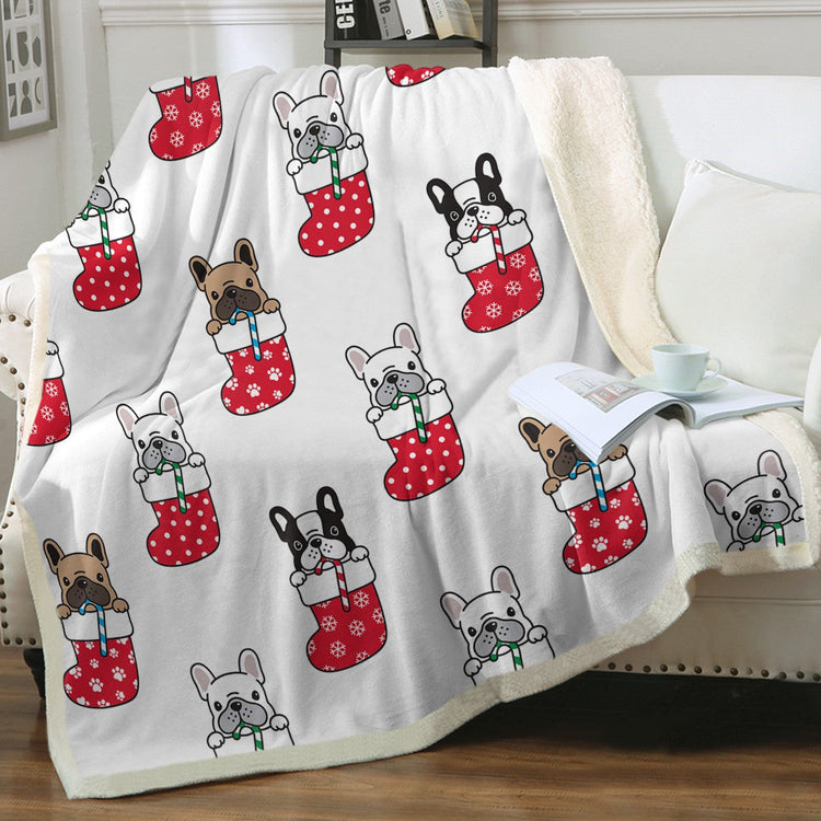 Christmas Stocking and Candy Cane French Bulldogs Fleece Blanket - 4 Colors