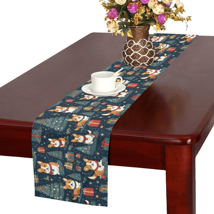 Bring the charm of a Corgi-filled Christmas into your home with our Corgi Christmas Festivity Decorative Table Runner.
