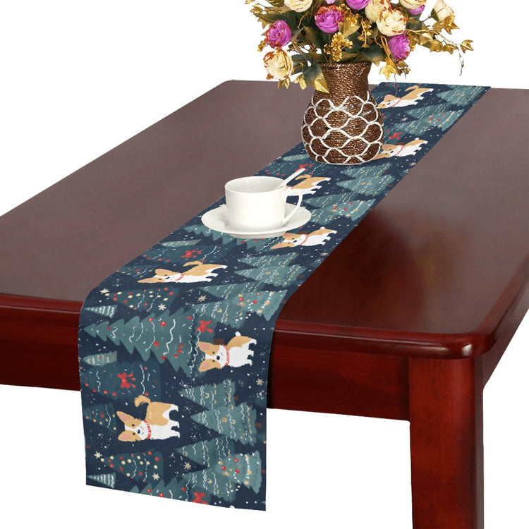 Bring the whimsy of a winter wonderland to your dining room with the Corgi Christmas Tree Mosaic Decorative Table Runner.