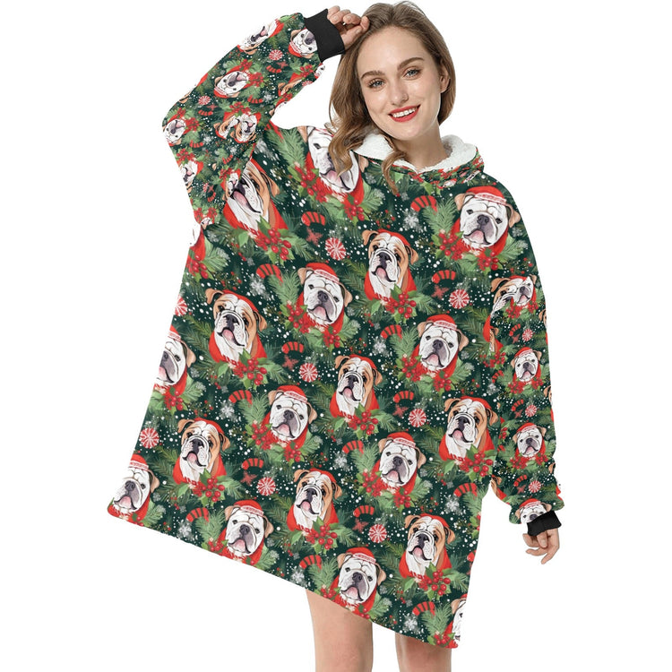 English Bulldog Santa's Helper Christmas Blanket Hoodie