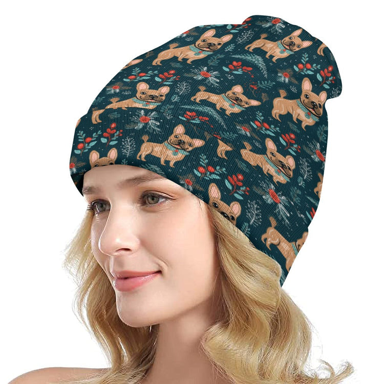 Fawn / Cream French Bulldog Festive Flair Warm Christmas Beanie