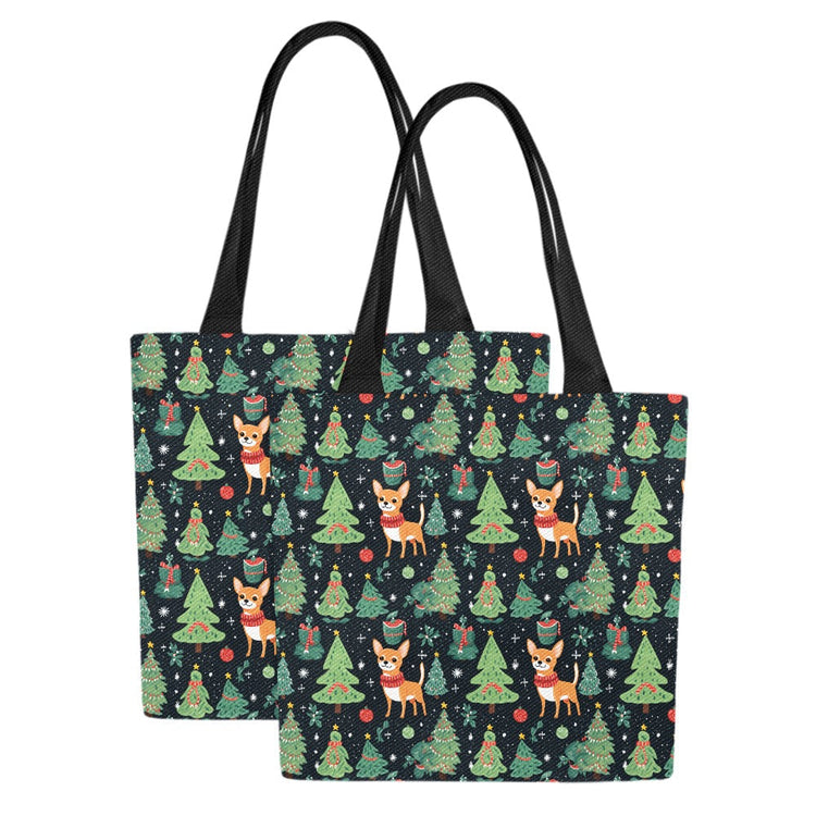 Step into the holiday spirit with our Fawn/Gold and White Chihuahua Christmas Charm Large Canvas Tote Bags - Set of 2.